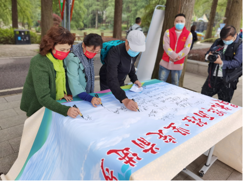 最后在红色签名环节,老同志们在“奋斗百年路、起航新征程”的签名副上郑重的签下了自己的名字并合影留念。