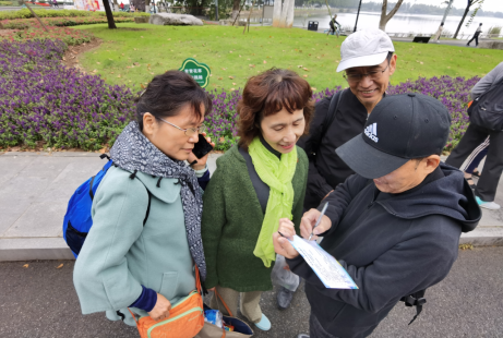 上午9时,武汉市委老干部局副局长辜喜同志致开幕词,副局长丁汉君同志宣布活动开始,随着鸣笛声起,老同志们开始以饱满的精神,愉悦的心情向预定终点走去。在烟波浩淼的东湖磨山,大家一边欣赏的湖光山色一边昂首向前。本次健步行活动全程6公里,途径5个打卡点,老同志们要完成党史答题,红色故事我来讲,主题打卡,歌颂祖国红色签名等5个趣味项目。