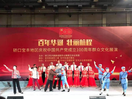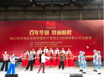 为隆重庆祝中国共产党成立100周年,硚口宝丰地区“百年华诞、壮丽航程”庆祝中国共产党成立100周年群众文化展演于6月25日下午在武汉体育馆举行,我校离退休教职工选送的表演唱《十送红军》代表宝丰社区参加了本次演出。