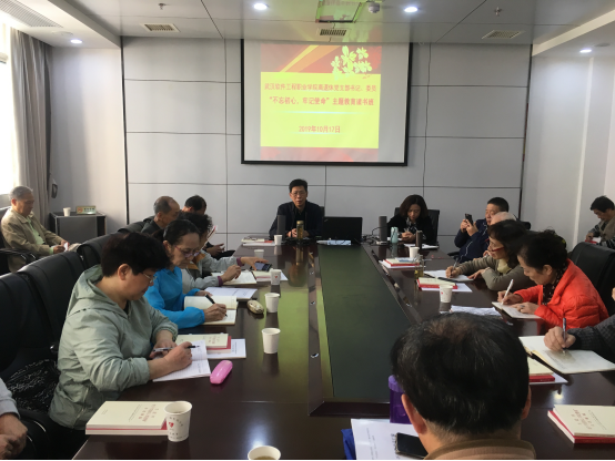 张处长强调,在前期开展主题教育学习的基础上,要在离退休党员干部中更加广泛、扎实开展好学习教育,重点是要认真学原著悟原理,通过采取集中学习、个人自学、专题辅导、研讨交流、警示教育、先进典型教育等相结合的方式推动学习贯彻习近平新时代中国特色社会主义思想往深里走、往心里走、往实里走,把学习成效体现到增强党性,永葆离退休党员的政治本色,不断增强“四个意识”、坚持“四个自信”、做到“两个维护”为学校建设发展增添正能量。