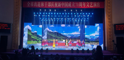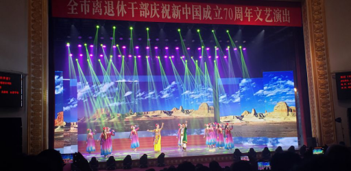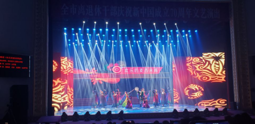 演出当天,当欢快的新疆舞蹈《欢乐的麦西来甫》的音乐声响起,在舞台上绚丽的灯光和表现新疆风情的背景的衬托下,我们老同志们用饱满的热情,欢乐优美的舞姿展示新疆人民载歌载舞与全国人民喜迎盛世华章的美好场景,表达对祖国母亲70华诞的美好祝福,让观众们沉浸在异域风情的陶醉之中,表演结束剧场里响起了观众们热烈的掌声,这是对我校离退休老同志们最好的赞许。