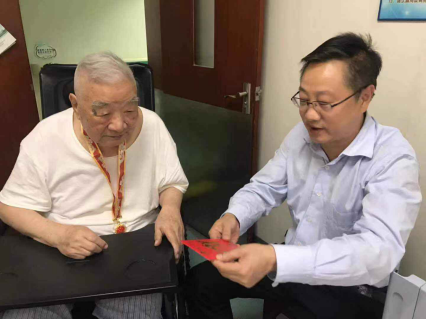 每到一位离休老干部家中,校领导都慎重拿出由中共中央国务院,中央军委颁发的庆祝中华人民共和国成立70周年纪念章,亲自为离休老干部佩戴在他们胸前,与他们合影留念。校领导拉着老干部的手嘘寒问暖,深情的说:在举国欢庆祖国70岁生日的时候,党中央和全国人民没有忘记你们,在革命战争时期,是你们在国家危难之际,困难之时挺身而出,用一名共产党员的使命担当和对人民的承诺救国家于苦难,在和平时期又是你们用一颗建设好国家的心将我们伟大的祖国建设的如此繁荣昌盛,你们是党和国家的功臣,更是宝贵的财富。学校因为你们而倍感骄傲和自豪,老同志们的这种不忘初心,牢记使命的大无畏革命精神非常值得我们学习和发扬,希望老干部们为学校的建设发展多提出宝贵意见和建议。同时,衷心祝愿老干部们保重身体,幸福快乐的过好晚年生活。