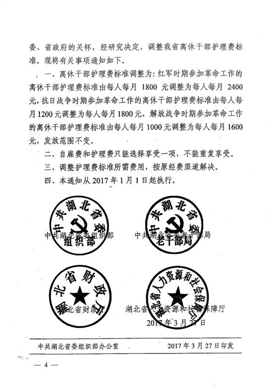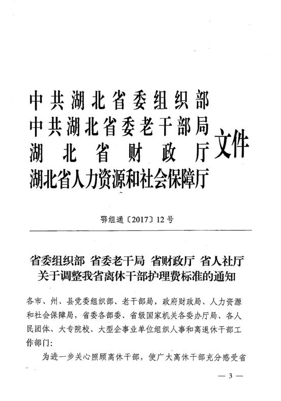 《关于调整离休干部护理费标准的通知》