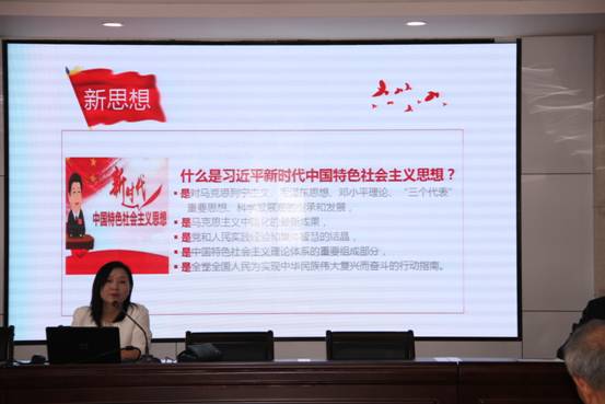 为全面贯彻落实党的十九大报告精神,让离退休党员干部更全面更系统学习党的十九大报告学校,离退休工作处于2018年4月12日上午在汉口校区综合楼八楼会议室举办离退休党员干部学习十九大精神报告会,特别邀请学校开放教育学院院长胡良琼教授作《新时代 新思想 新使命 新征程》学习党的十九大精神专题辅导报告,共有近百位离退休党员干部参加学习。报告会由离退休工作处处长张国华同志主持。