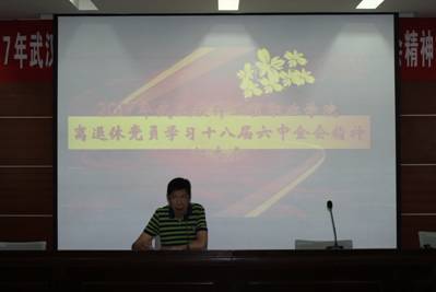 为深入学习党的十八届六中全会精神,进一步领会以习近平同志为核心的党中央的治国理政新理念、新思想、新战略,推进离退休党员干部“两学一做”学习教育常态化、制度化,离退休工作处于5月24日上午,在学校汉口校区二楼多功能厅举行离退休党员学习党的十八届六中全会精神报告会。邀请学校离退休教师原学校人文学院思政课陈浩川教授主讲。共有150余名离退休党员干部参加报告会,报告会由离退休工作处处长张国华同志主持。