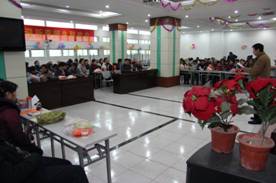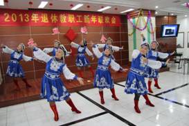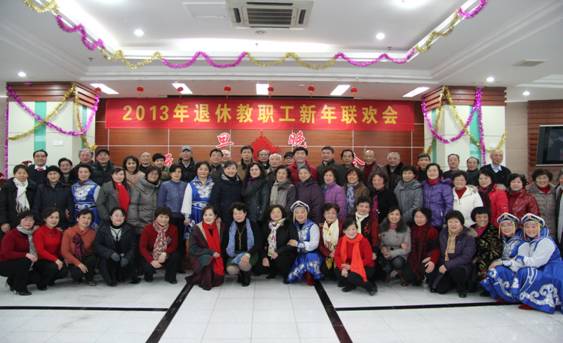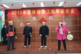 在今年圣诞节和2013年元旦来临之际,由离退休工作处和院老年人艺术团联合举办的离退休教职工迎新年联欢会于2012年12月25日在汉口校区2楼多功能大厅隆重举行。院老年协会会长张道掀同志,离退休党总支书记肖华初同志参加了联欢会,老年协会各分会会长、各党支部书记、委员以及部分老同志代表共150余人参加了联欢会。联合会由老年艺术团负责人杜喜平同志主持。