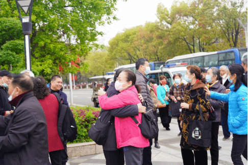 离退休教职工在国旗广场集合
