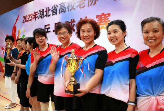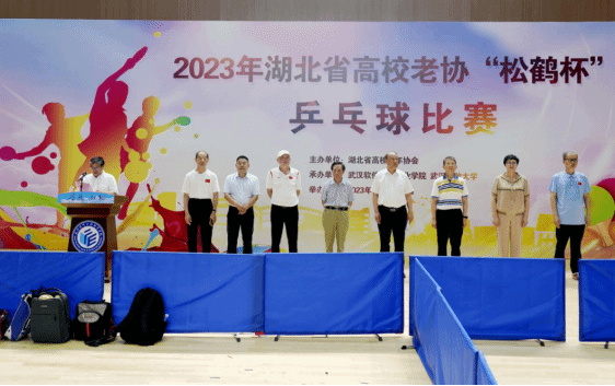 为促进省内高校之间的文化交流,推动老年人体育健身事业,展现新时代老年人精神风采,2023年湖北省高校老协“松鹤杯”乒乓球比赛于2023年7月2-4日在我校体育馆举行,省教育厅关工委常务副主任孟庆金、省高校老年协会会长丁振国、副会长黄浩军、胡大平,副秘书长王莉、文体部副部长王金灿、王天向,校党委书记马蜂、副校长万国邦等领导出席开幕式。